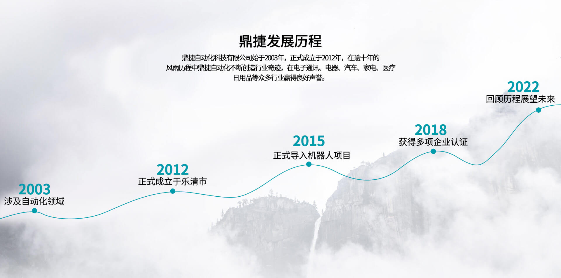 公司始于2012年,在逾十年的風雨歷程中,不斷創(chuàng)造行業(yè)奇跡,在電子通訊、電器、汽車、家電、醫(yī)療、日用品等眾多行業(yè)贏得良好聲譽。公司坐落于浙江省樂清經濟開發(fā)區(qū),現有人員63人,擁有經驗豐富的工程技術研發(fā)團隊11人,其中高級工程6人,具備本科以上學歷高級工程人員比例78%;同時鼎捷自動化在蘇州,東莞等地設立分公司以服務目標市場客戶,目前鼎捷自動化已經為下客戶提供配套自動化解決方案:泰科、安費諾、莫士、華為、中興、普聯、智英、意華、德豐、公牛、萬事達、華豐、飛雕、普思、冠聯、俊朗松田、進聯、高正、盛凌等。鼎捷自動化專業(yè)從事連接器、開關及相關電子、電器、五金、塑膠產品組裝自動化定制、設計、制造、銷售。2012年,鼎捷自動化正式導入機器人應用項目,可為各類客戶提供電子、電器、汽車、五金、塑膠等集成自動化智能組裝系統(tǒng)。